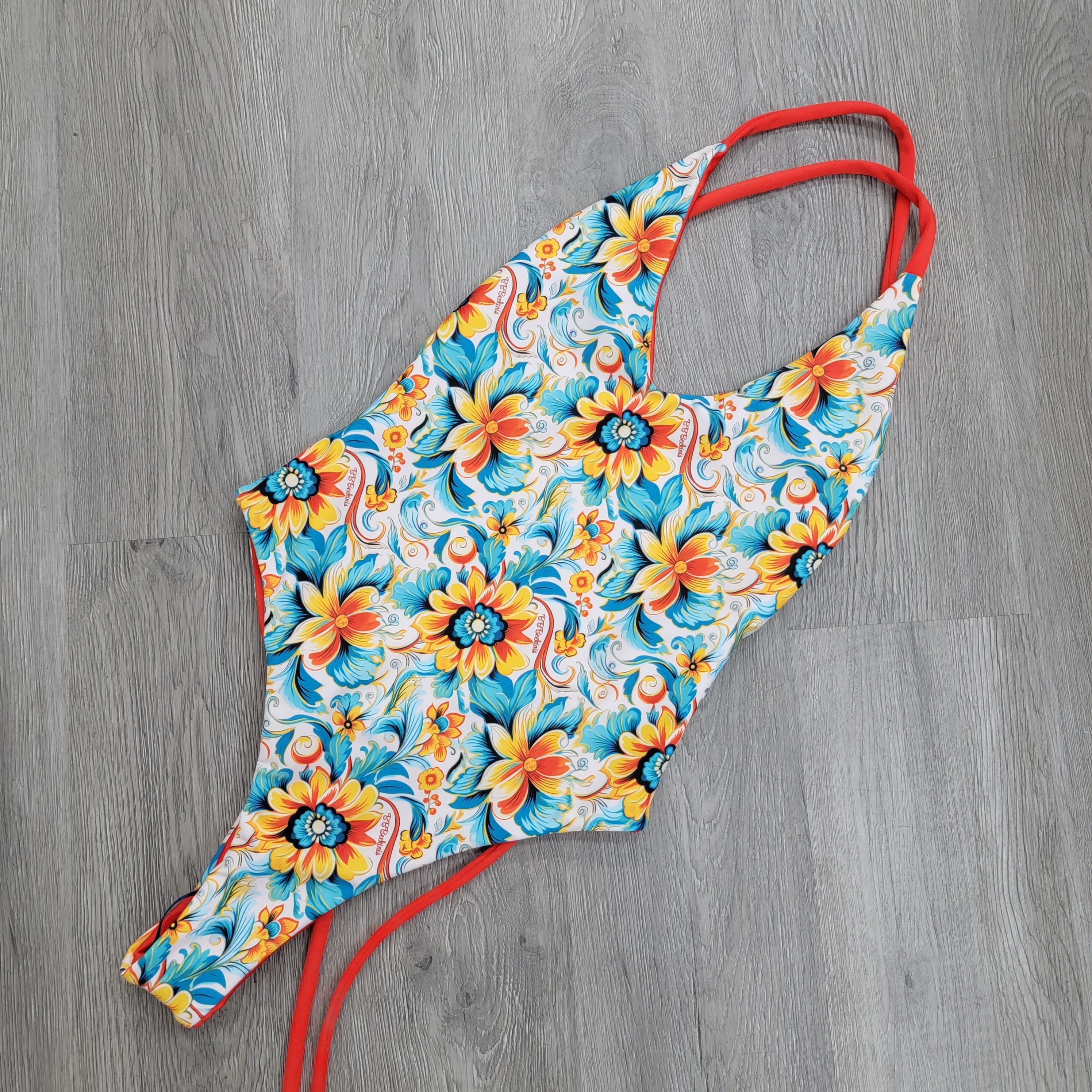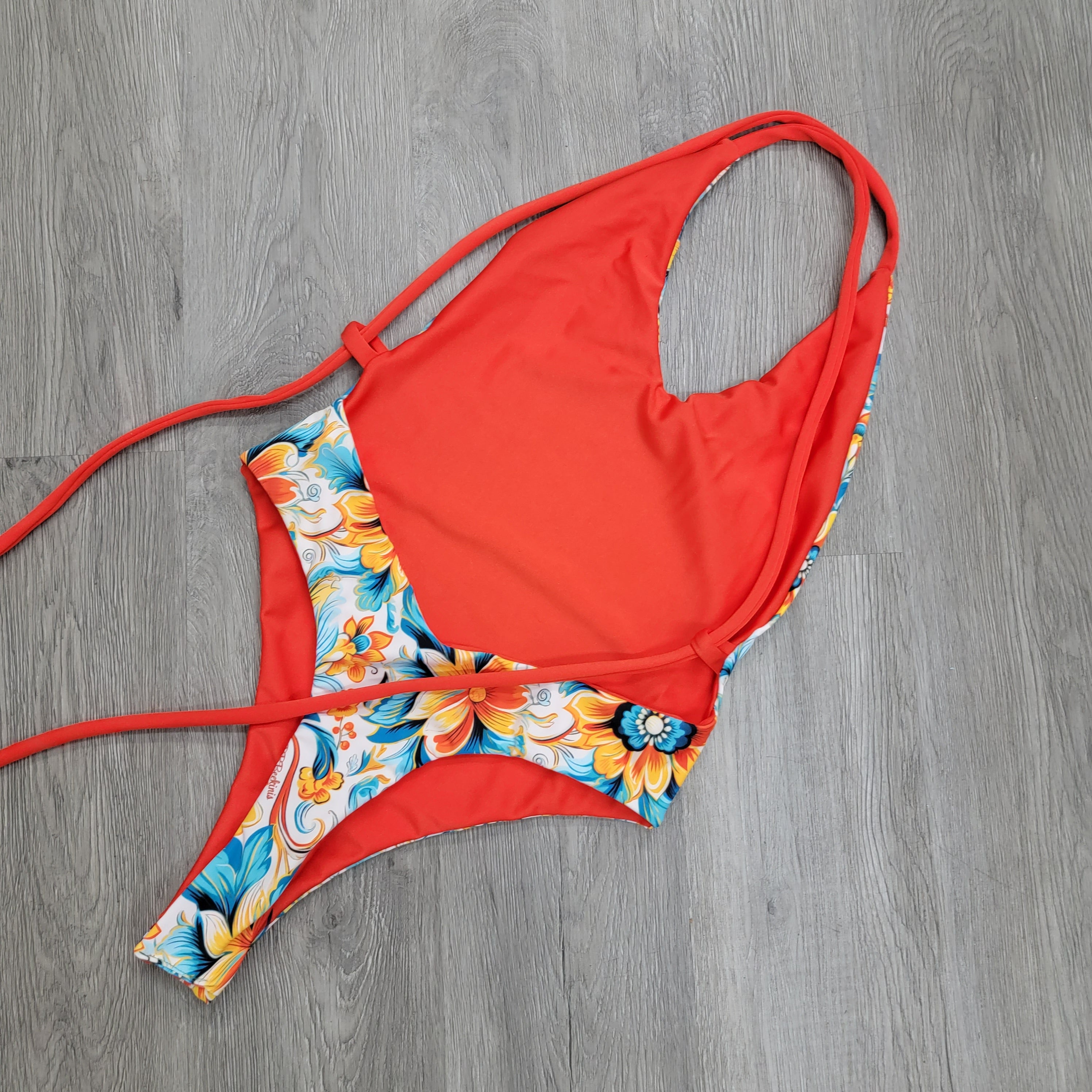 Choose your own adventure with this Adobe Cielo One Piece Thong! Enjoy a fresh floral look one day and switch to a sultry, hot coral underside the next. Show off your style with this must-have piece and get ready for the attention you deserve!