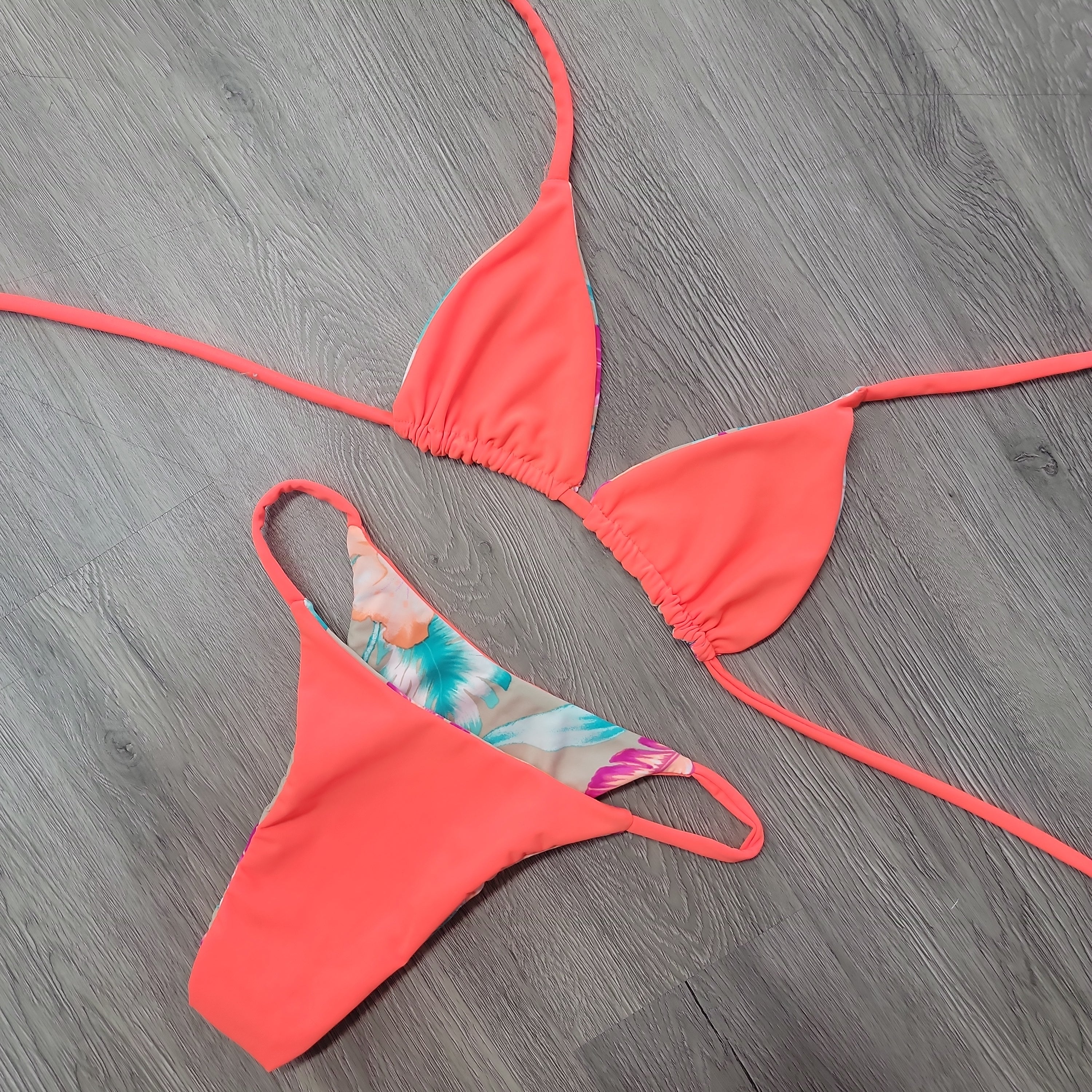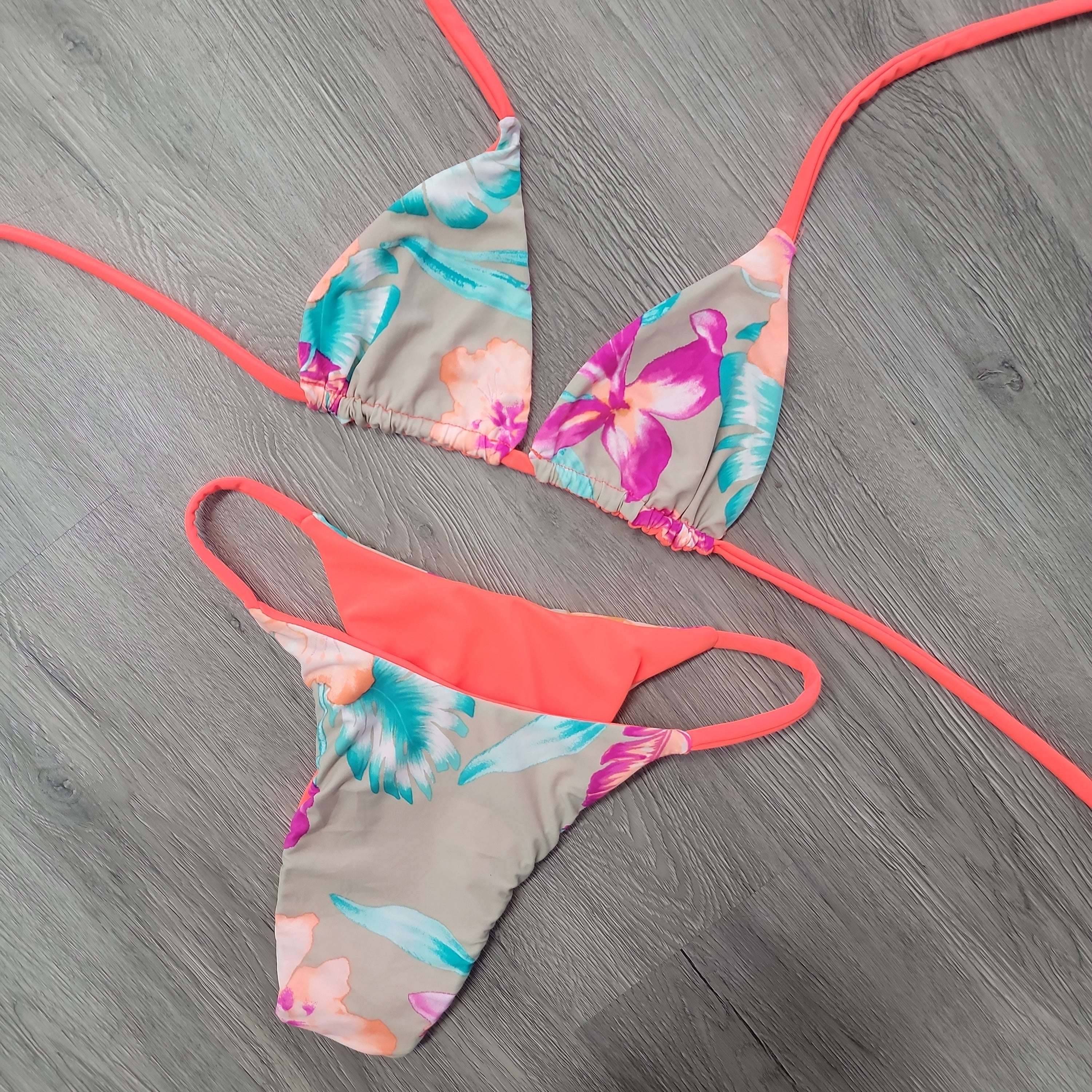 Make waves in the sunshine with this Tahiti orange triangle top! Featuring a vibrant neon tropical flower print, this flirty top is perfect for your next beach trip. Feel cool and stylish as you soak up the sun!