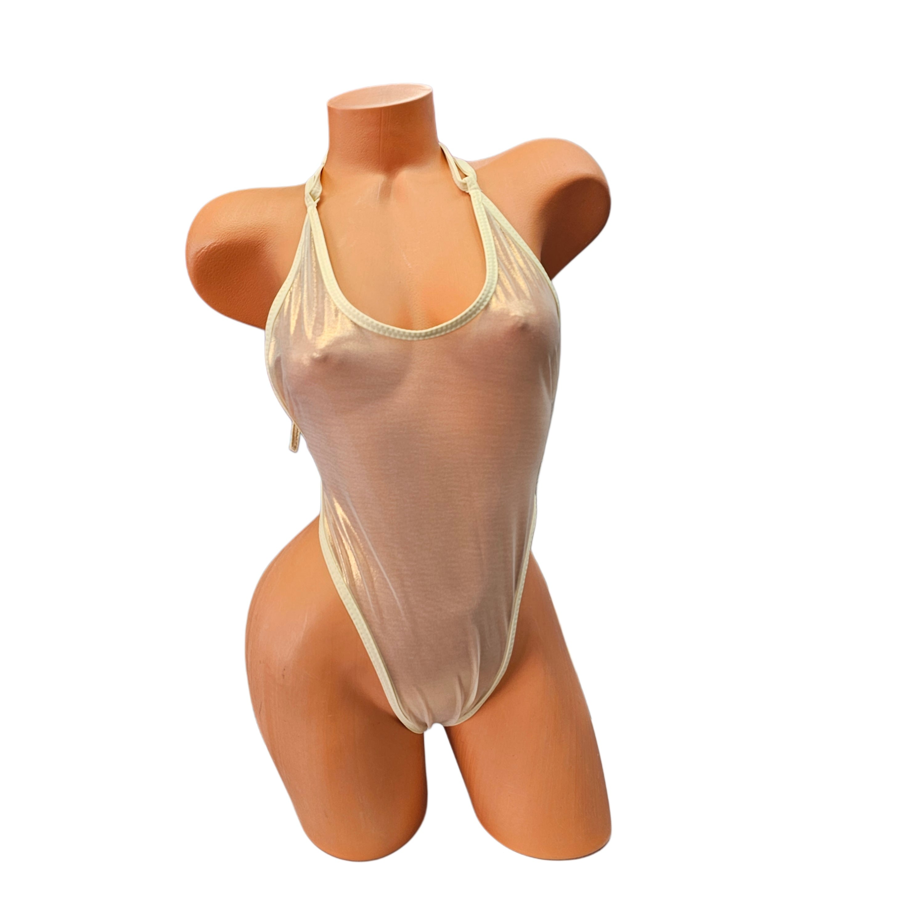 Make a statement at any pool party with our Pearl Tinikini Mesh Glimmer Mesh Sling back one piece! Show off your bold personality and leave nothing to the imagination with its thong back design. The adjustable strap tie neck adds a touch of adventure to your look. Shine like never before and make heads turn with the glimmer effect. Be daring, be confident, be you!