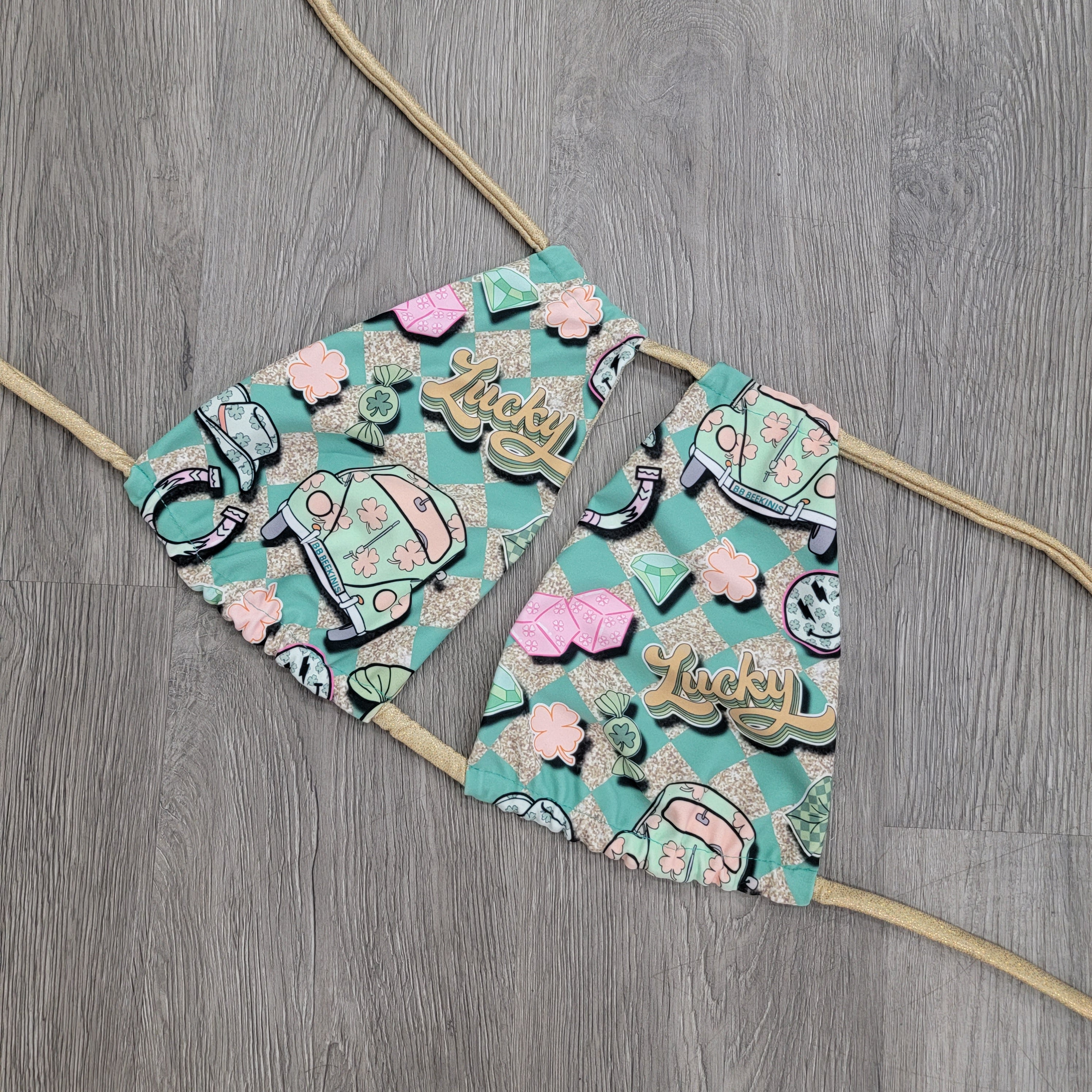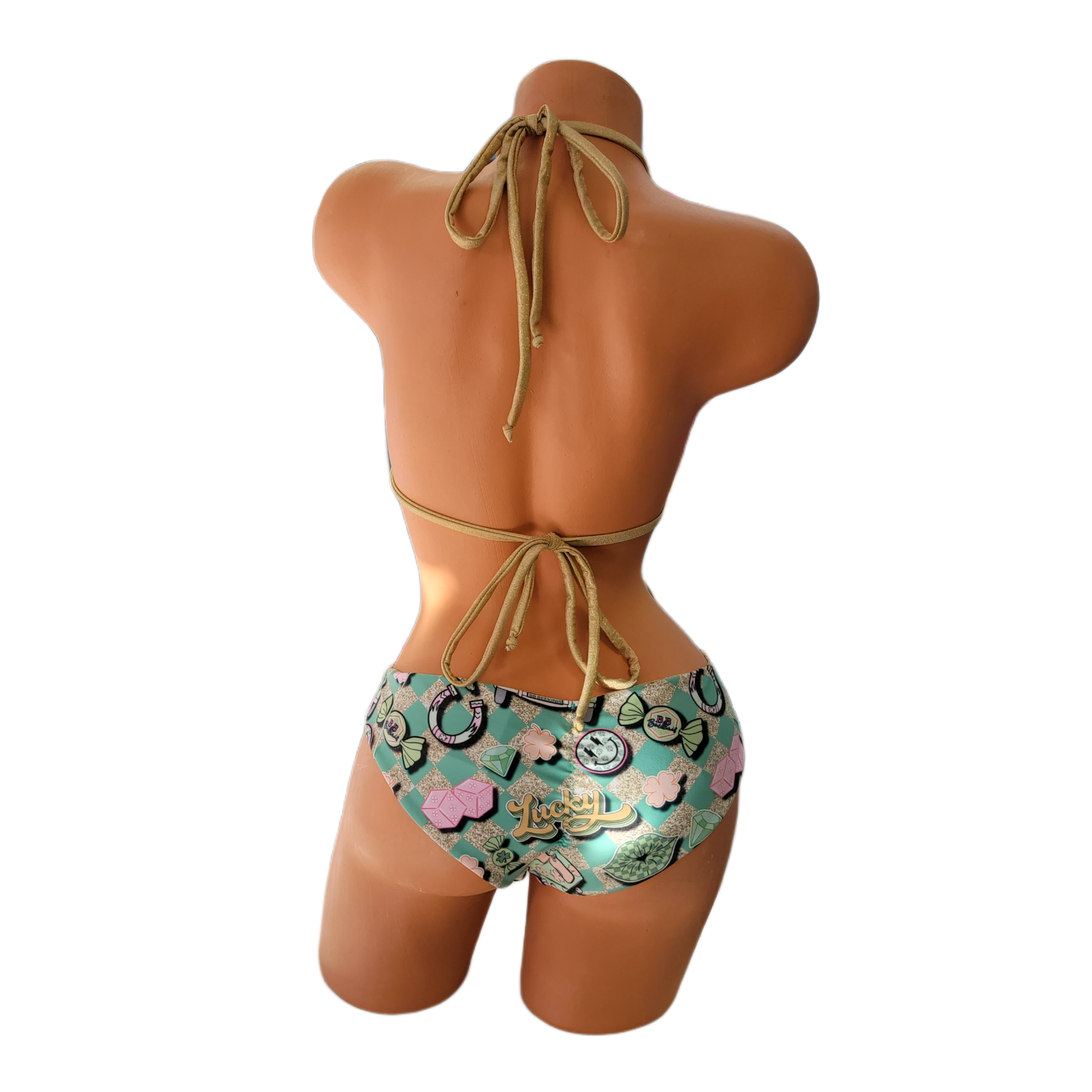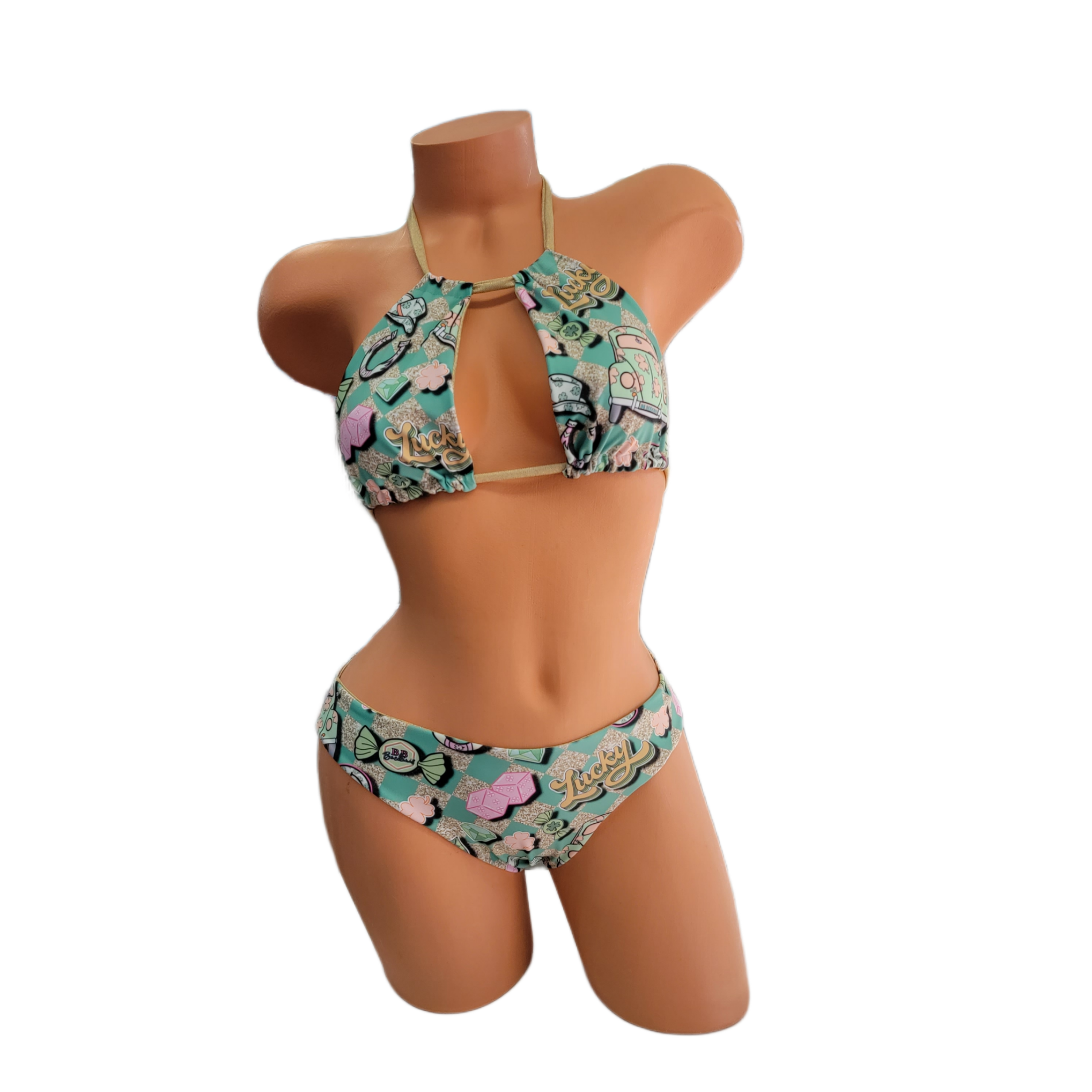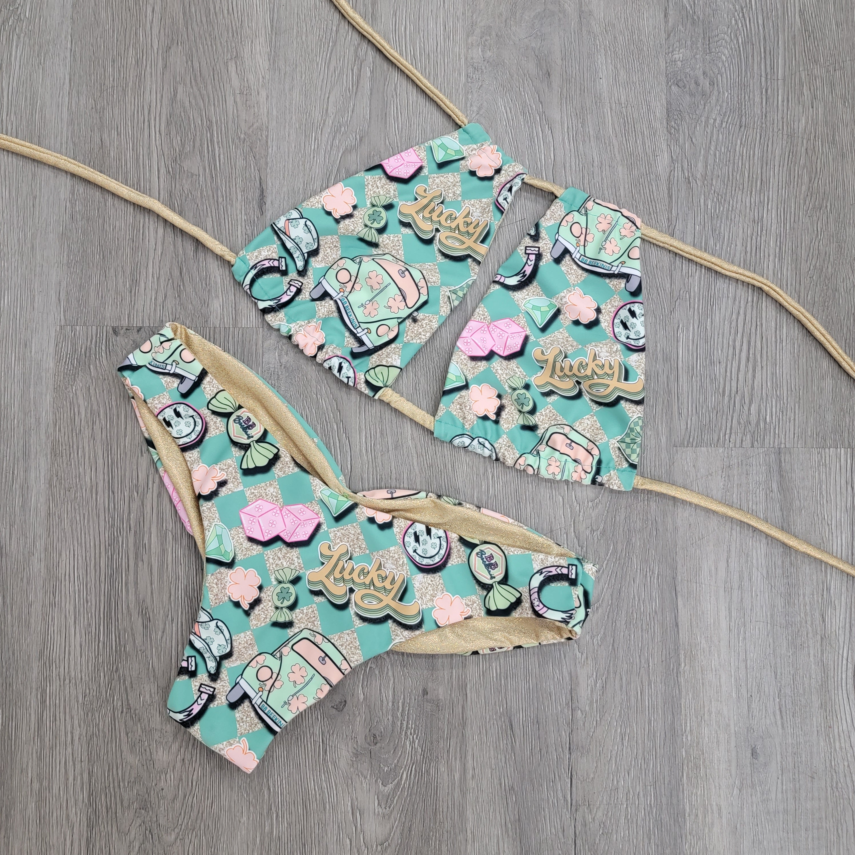 ʟʊƈӄʏ ʏօʊ Bikini! Feel confident in this Reversible BIKINI🍀 Custom print exclusive to BBBeekinis as we hand design our fabrics, so much to see in the cute and fun retro print!