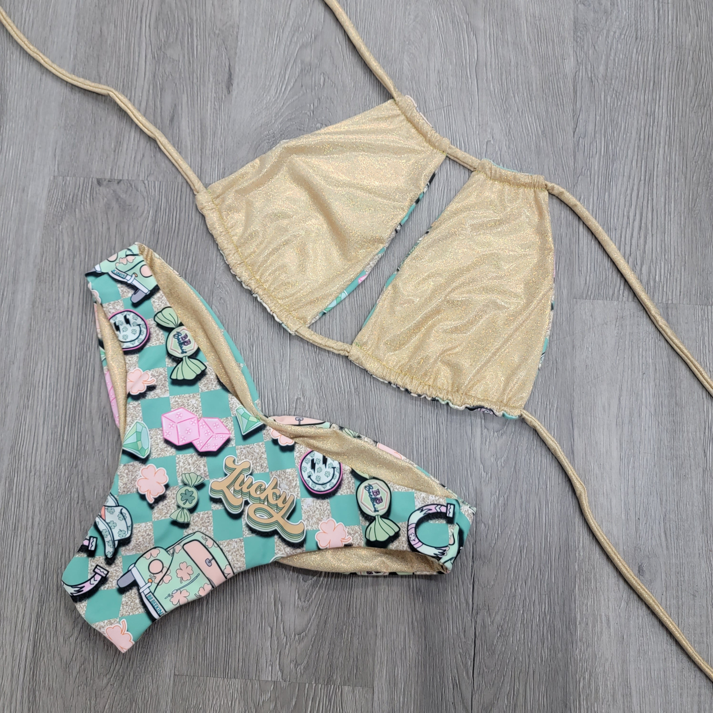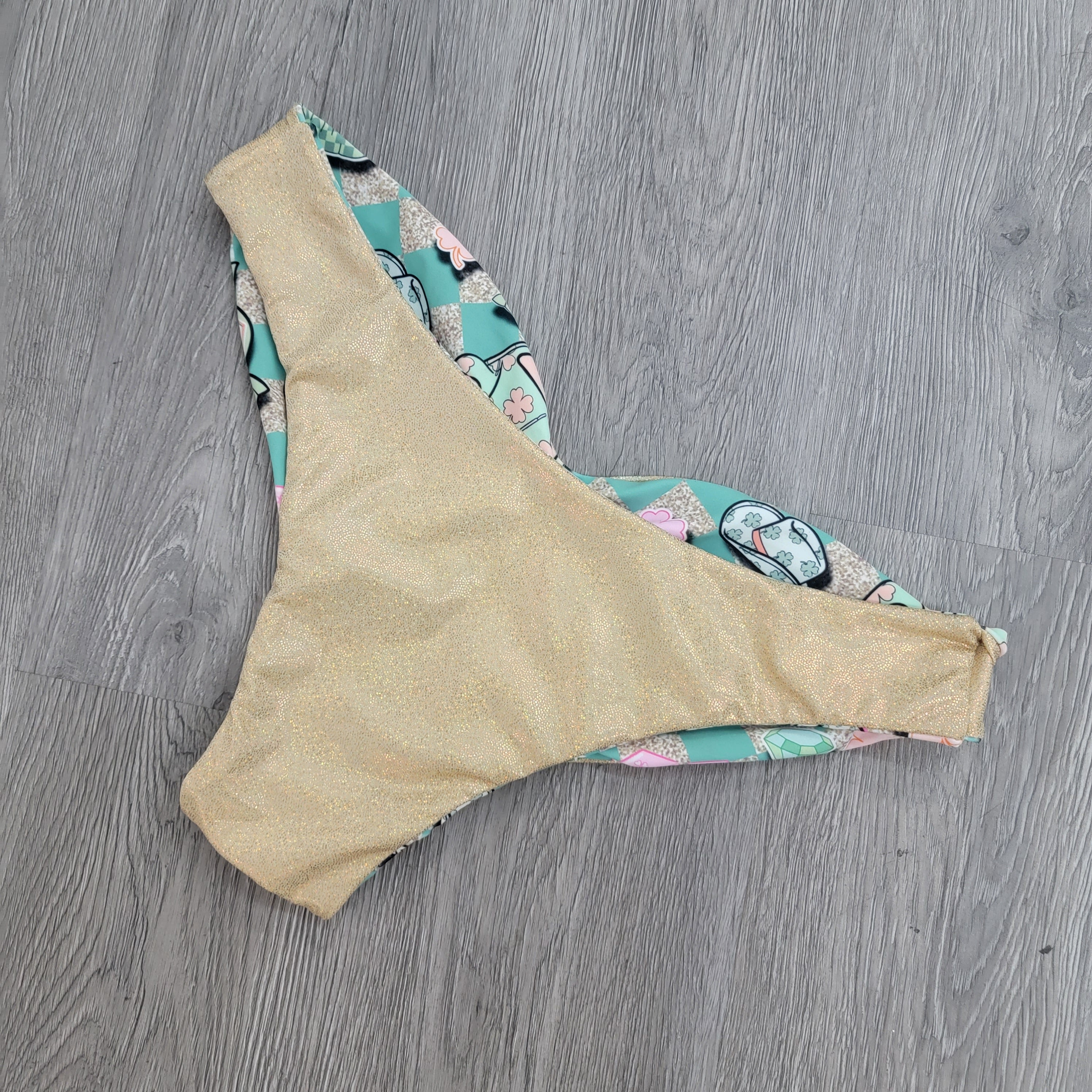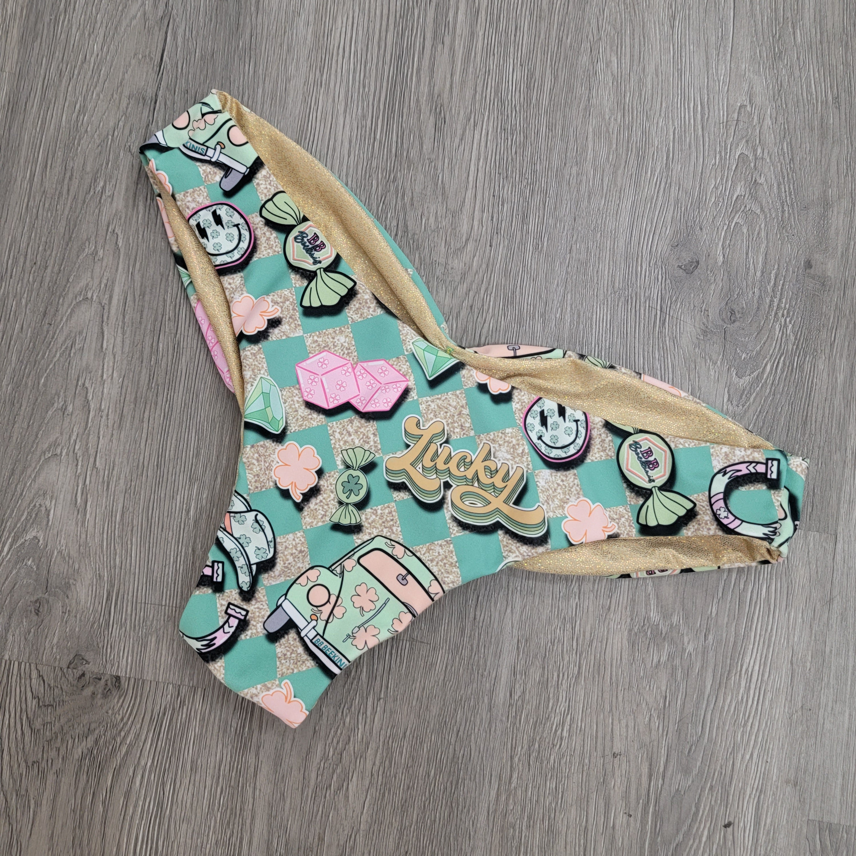 Our with a cheeky coverage scrunch at the bottom. The Zoey Bottoms are reversible, so can be worn multiple ways. You'll get lots of use out of these bottoms!