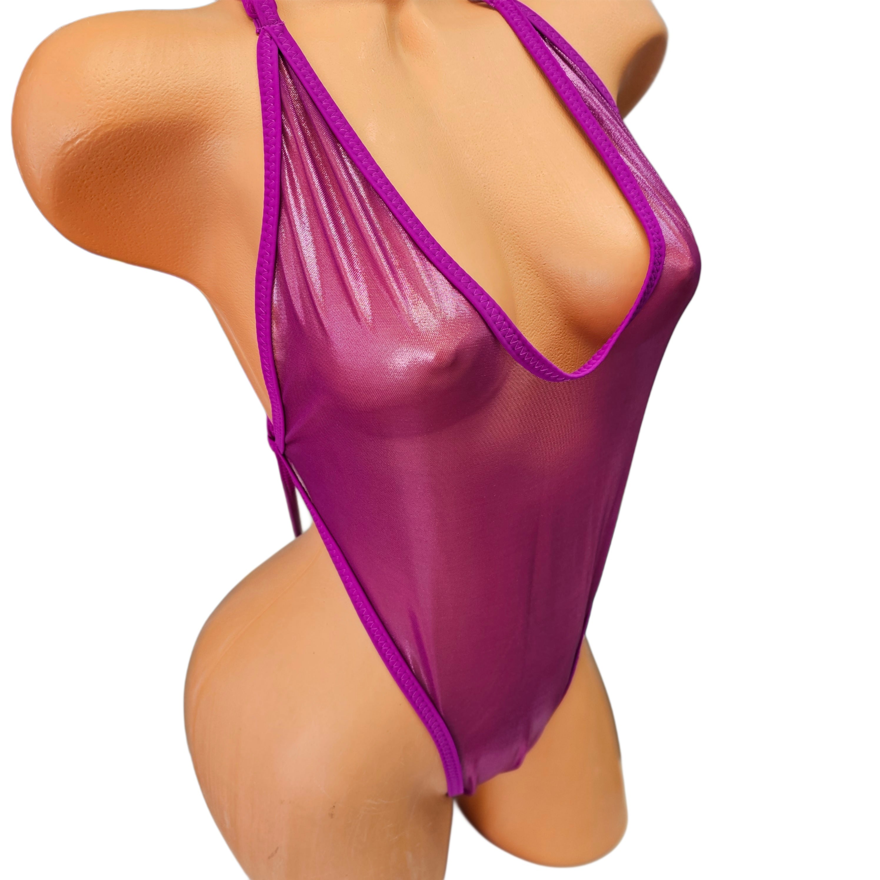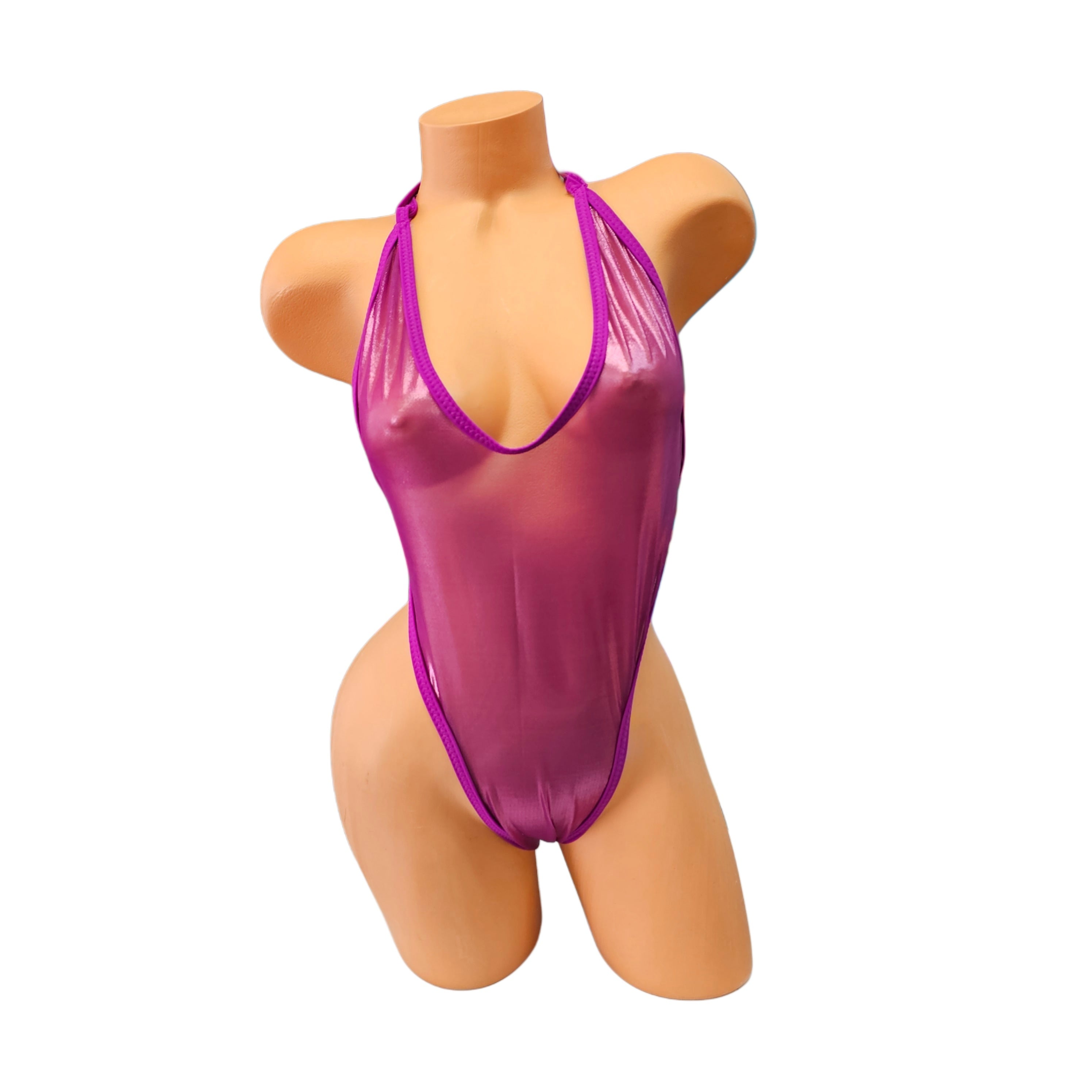 Make a statement at any pool party with our Magenta Tinikini Mesh Glimmer Mesh Sling back one piece! Show off your bold personality and leave nothing to the imagination with its thong back design. The adjustable strap tie neck adds a touch of adventure to your look. Shine like never before and make heads turn with the glimmer effect. Be daring, be confident, be you!