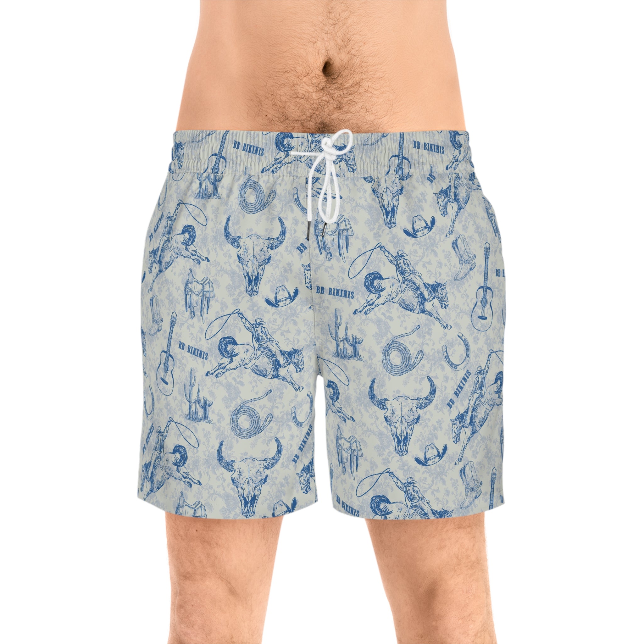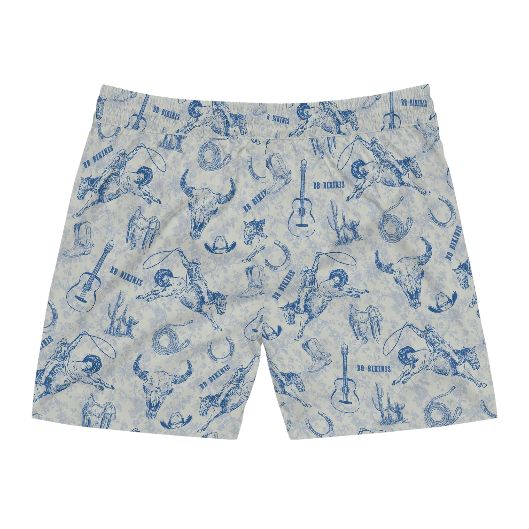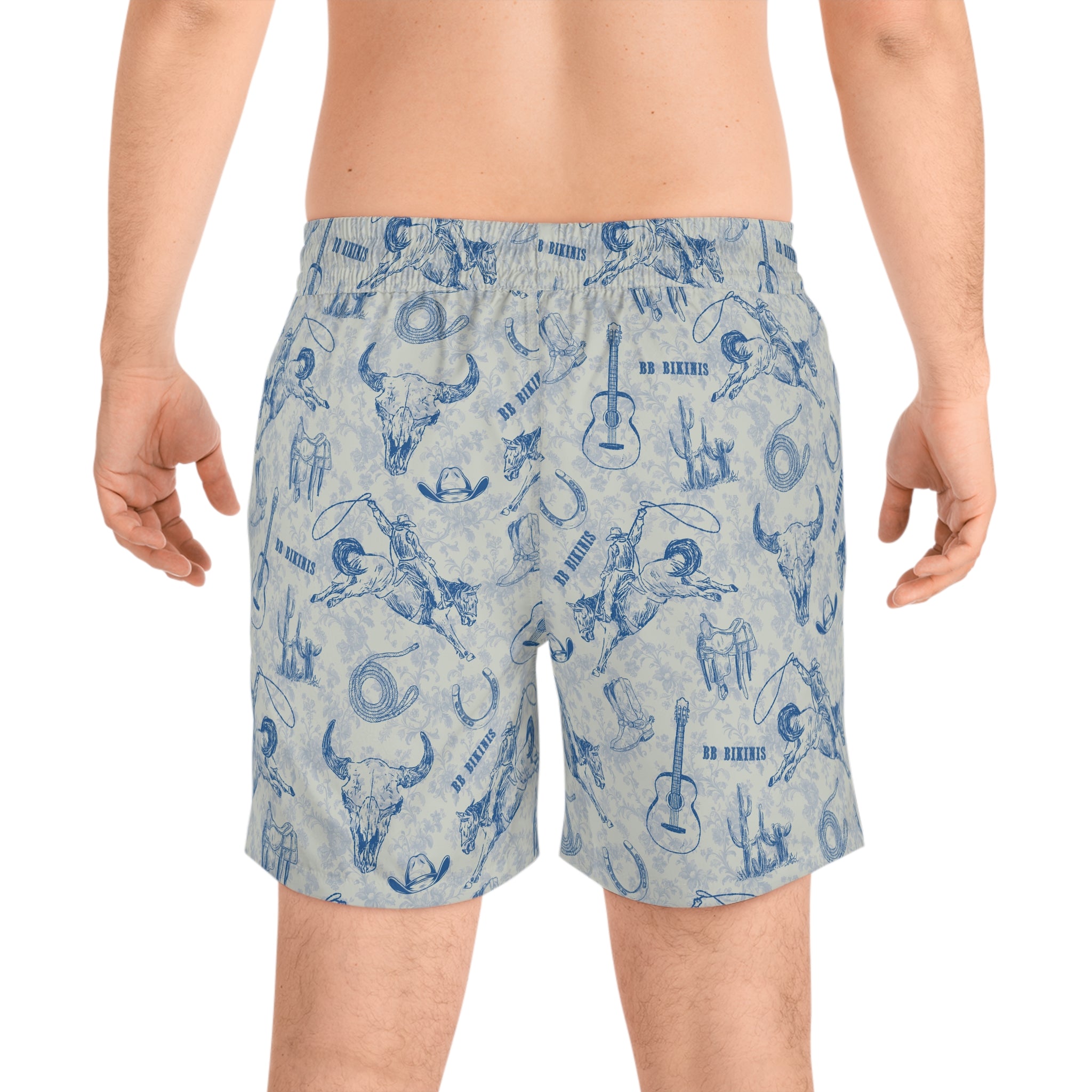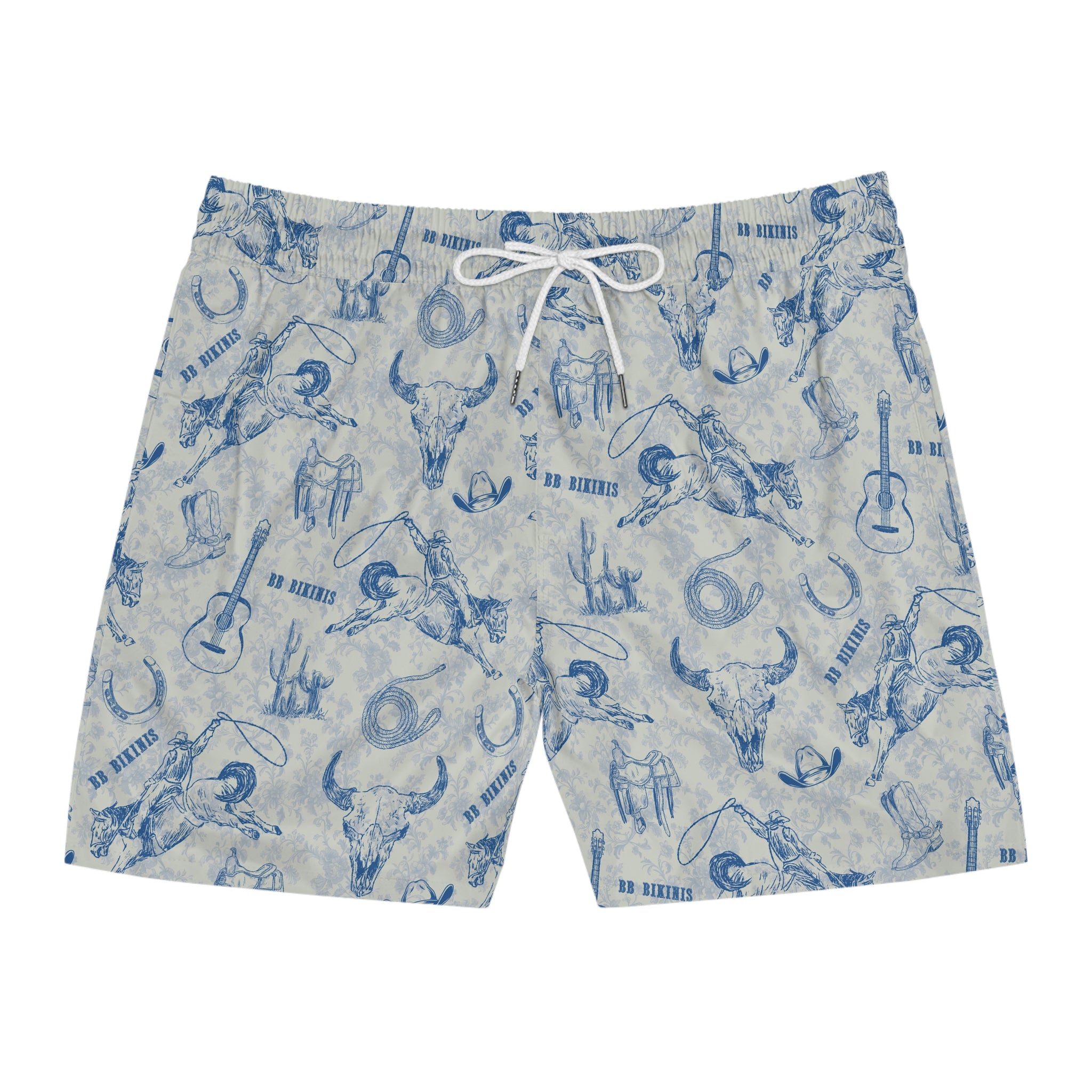Men's Western Print Swim Shorts, Cowboy Swim Trunks, Summer Poolwear, Beach Shorts for Men, Nautical BBQ Attire