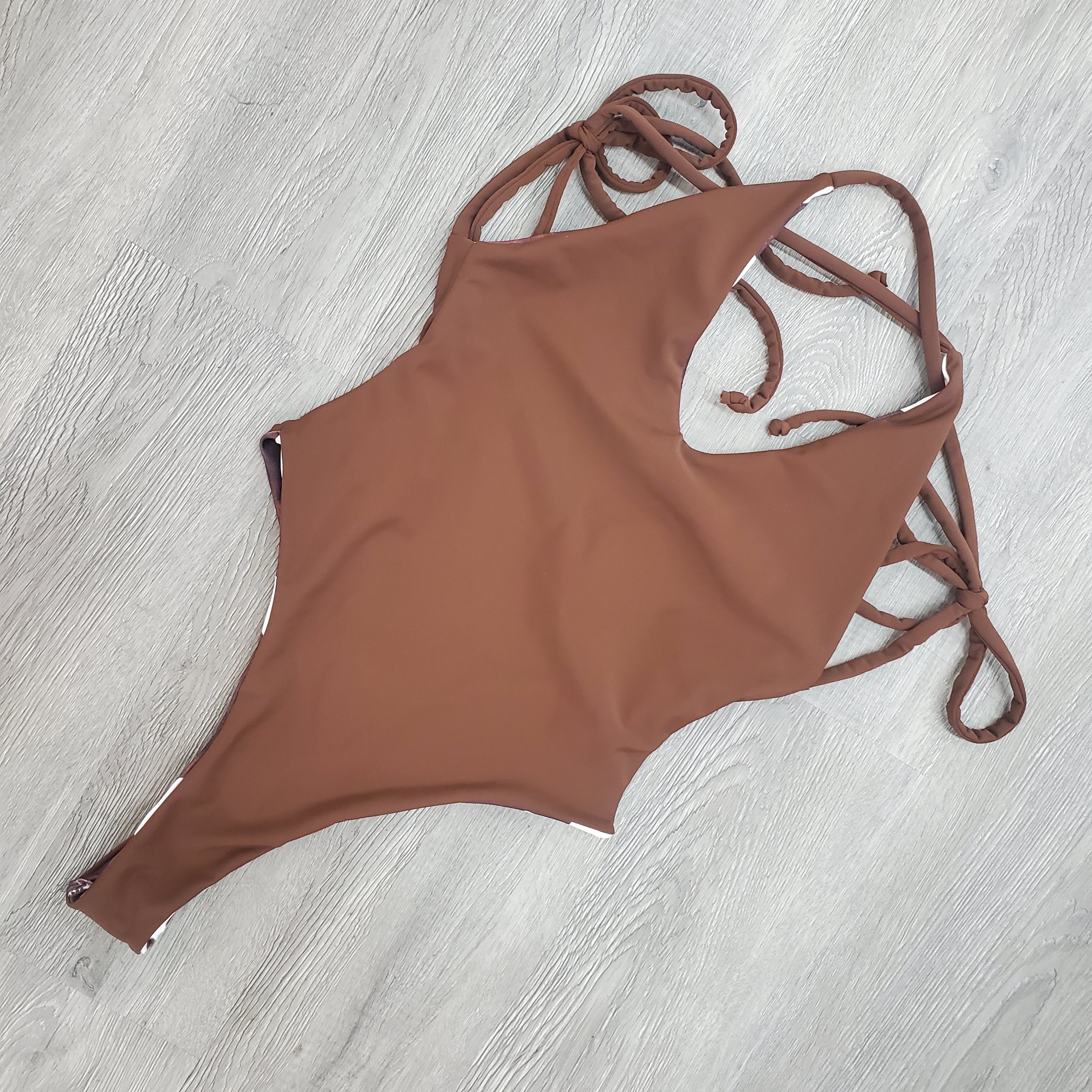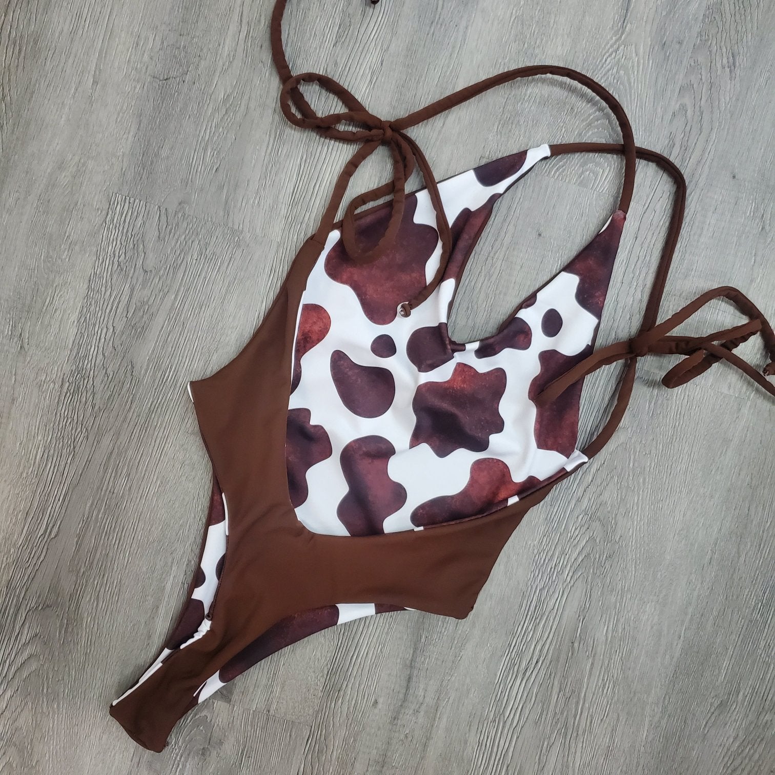 My Milkshake brings all the goodies, like this suit with my booty! Be cheeky and stylish at the beach with this reversible Milkshake One Piece swimsuit! Full coverage in front and adjustable straps in back, you can switch from Milkshake print to a fun brown color whenever you want! Get ready to turn heads and hit the waves - it's time to feel utterly cute! Thong back, cheeky butt!