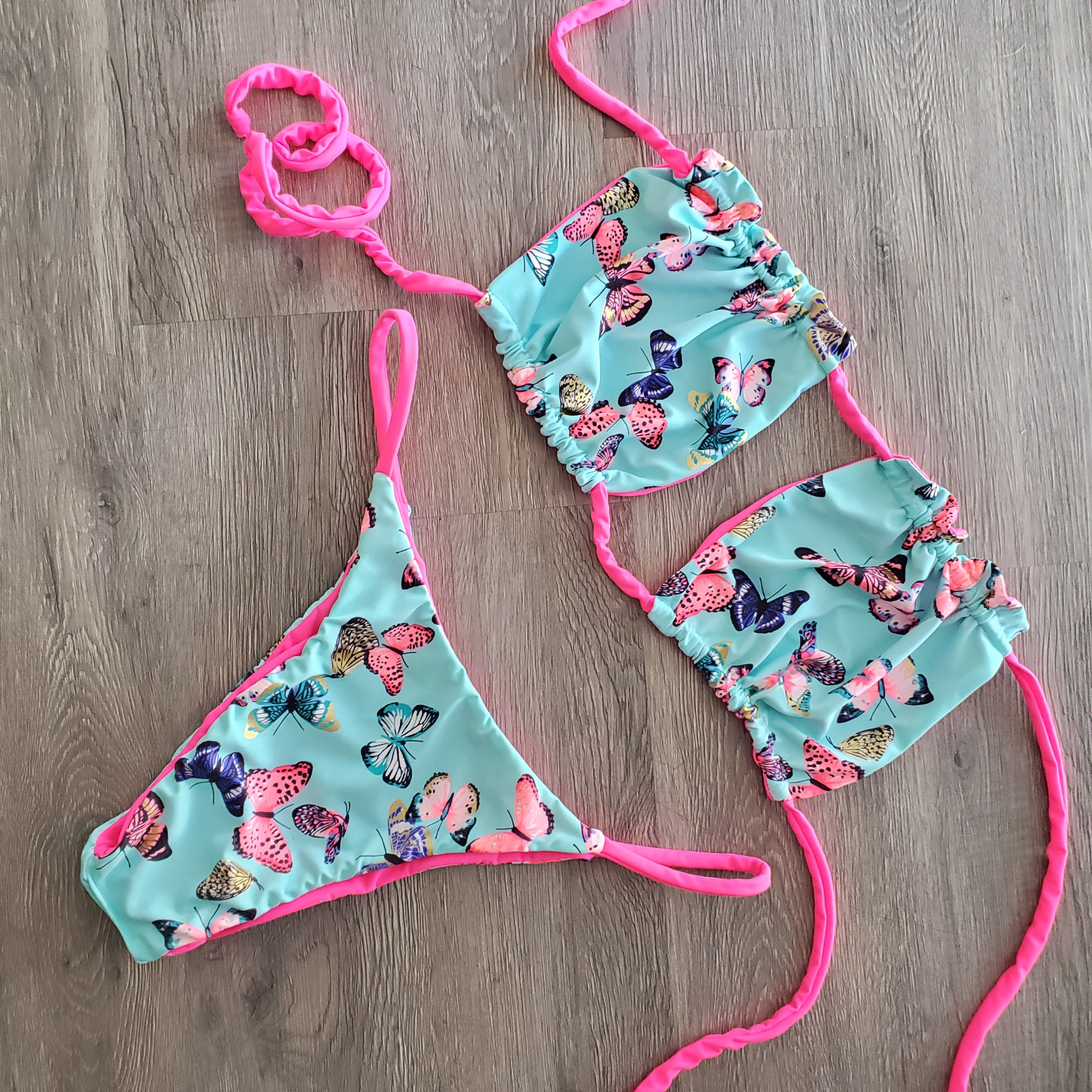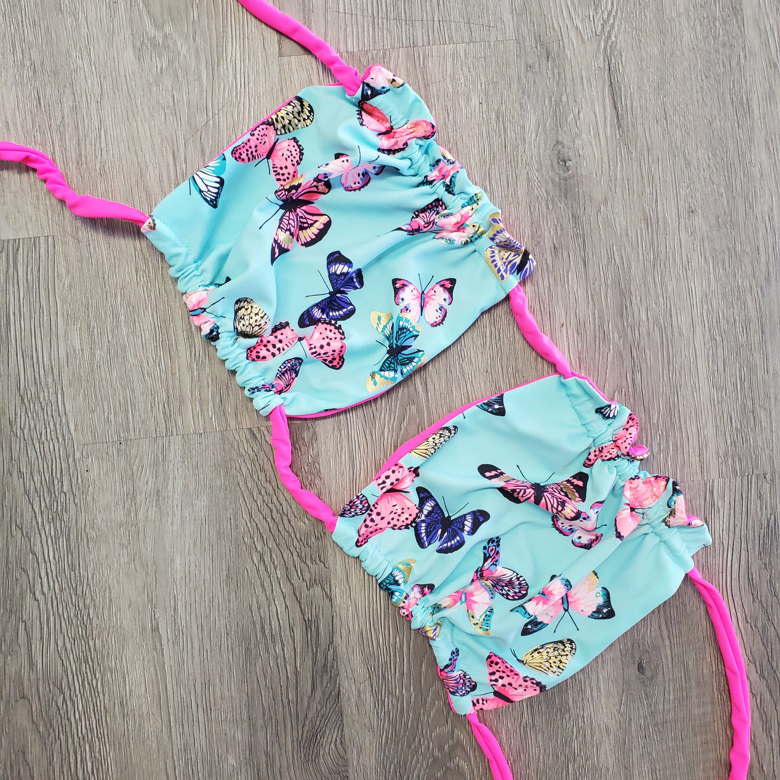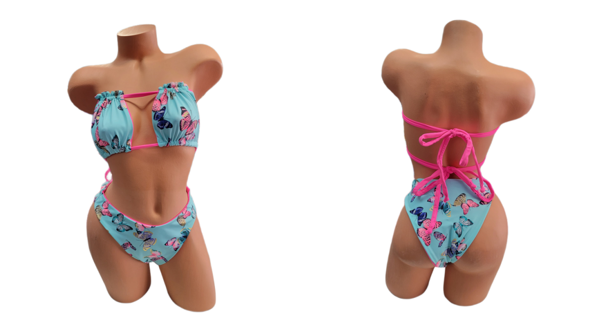 Be bold and beautiful in our Misty Ditzy Top! With blue butterflies and a reverse to pink, this fun style offers multiple ways to wear (and show off that open back). Look effortlessly cool and playful with this ditzy top!