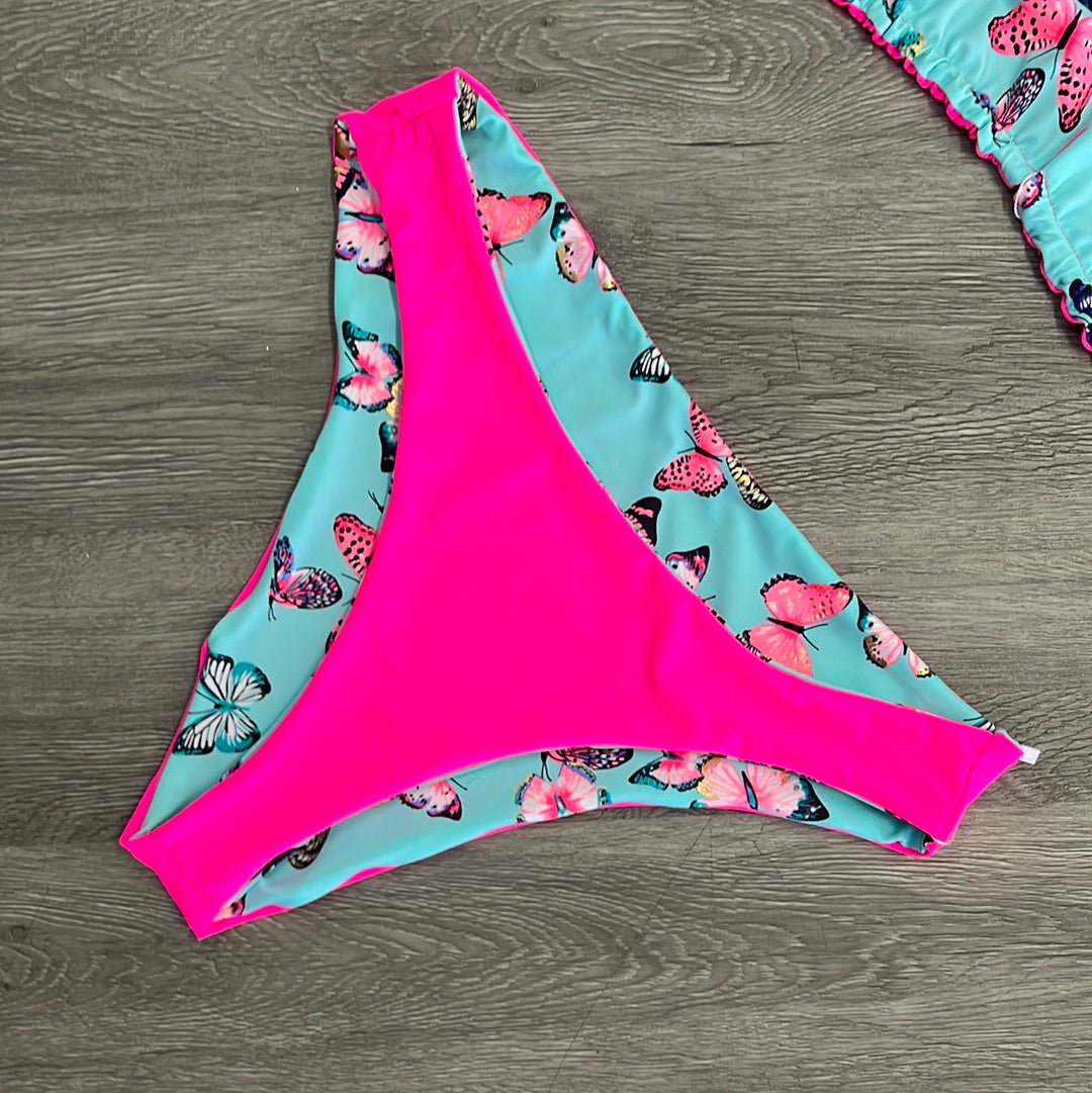 Our Misty Kona Bottoms are here to give you just the right amount of coverage for a day of lounging in the sun! With a vibrant butterfly design against a teal background, they'll have you feeling like you can fly with every step. Keep your cuteness level at maximum while looking good and feeling comfortable with the moderate coverage and high waist! Spread your wings and be prepared to flutter away in style.