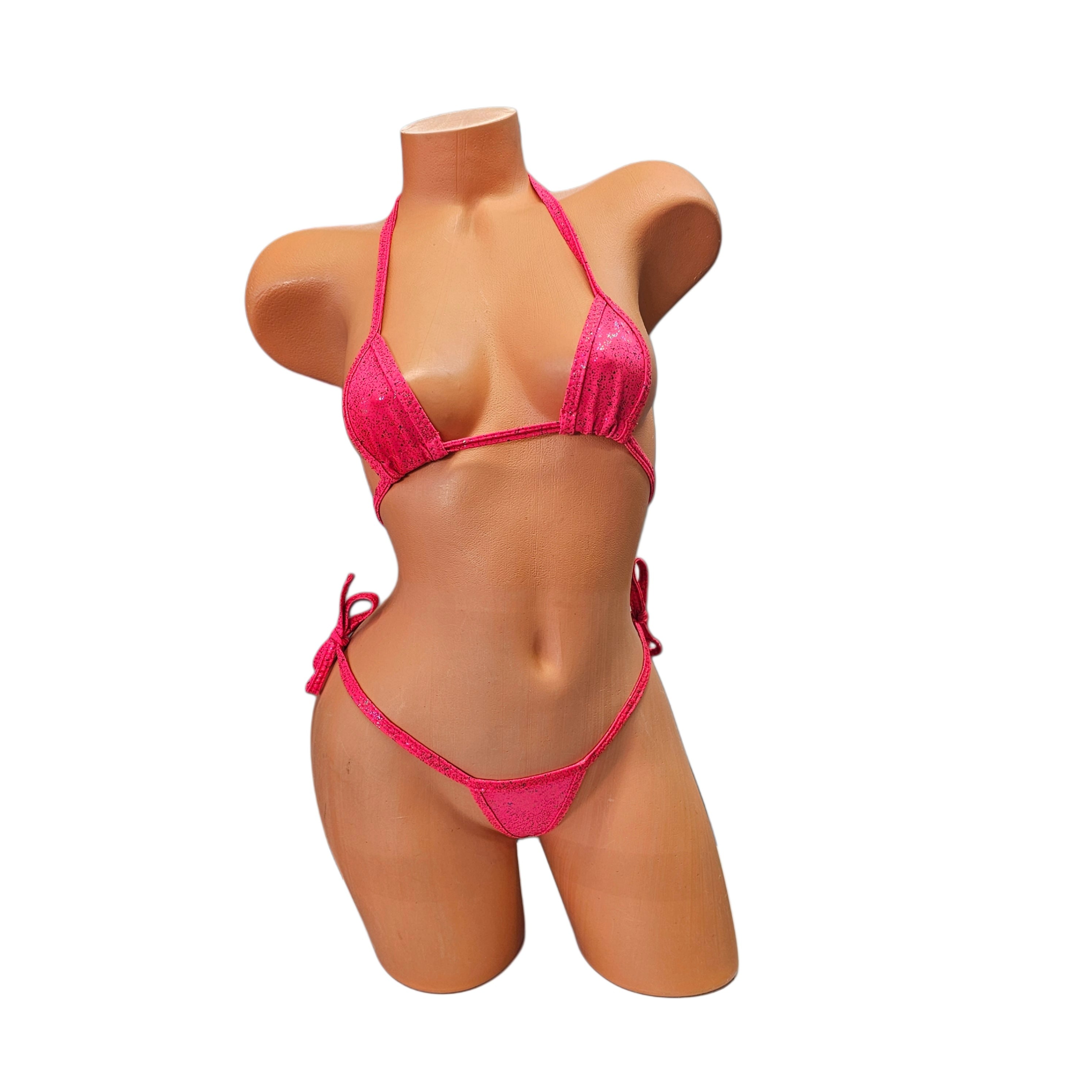 Get ready to turn heads in our Pink Sparkle bikini! The 4 way stretch spandex hugs your curves, while the foil print adds a pop of color. Perfect for those hot days, the tie sides allow for a customizable fit. Strike a sultry pose in this unique swimsuit!