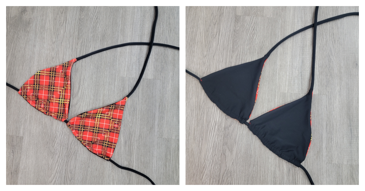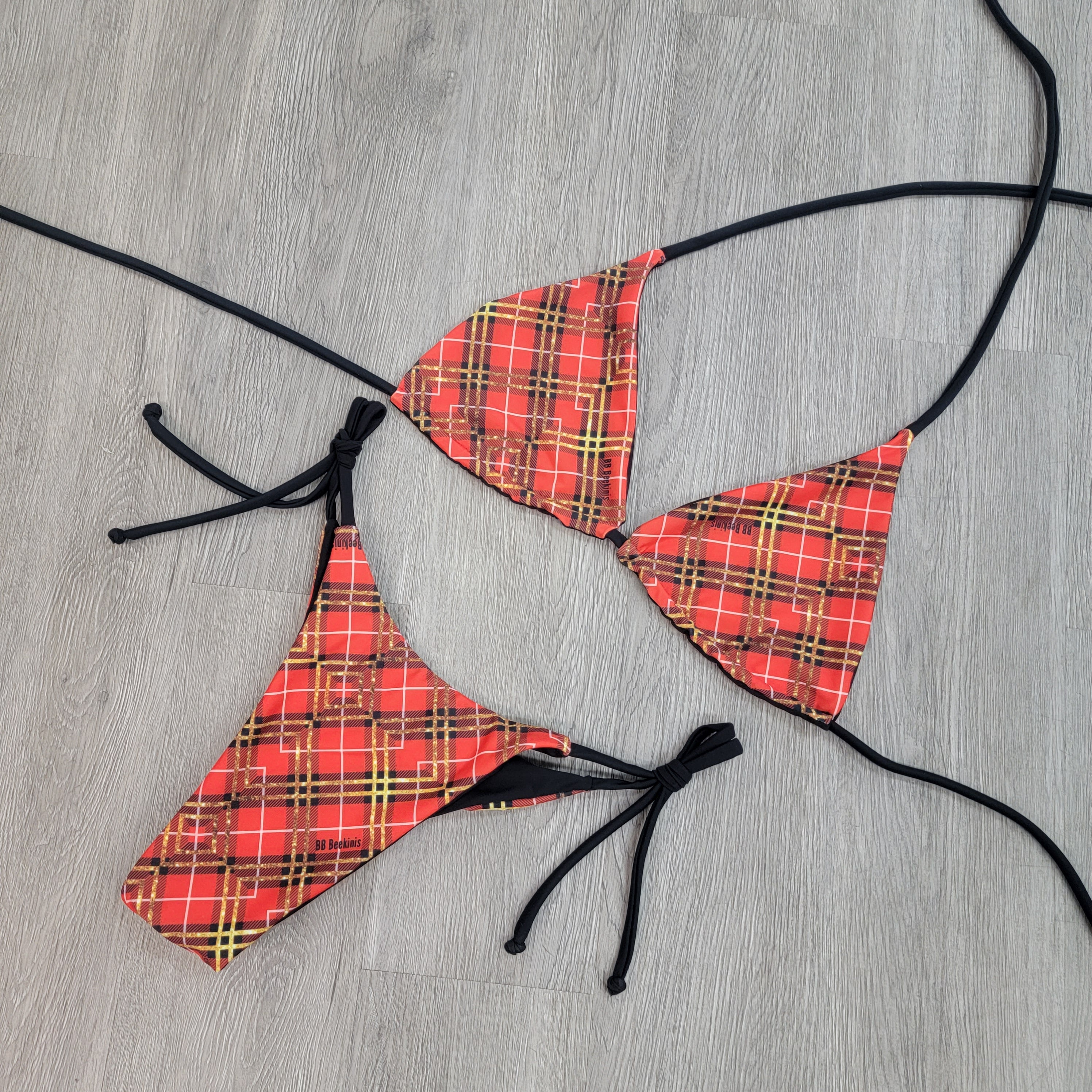 Make holidays merry and bright with this classic plaid triangle top that's totally reversible to black! Christmas cheer never looked so good.