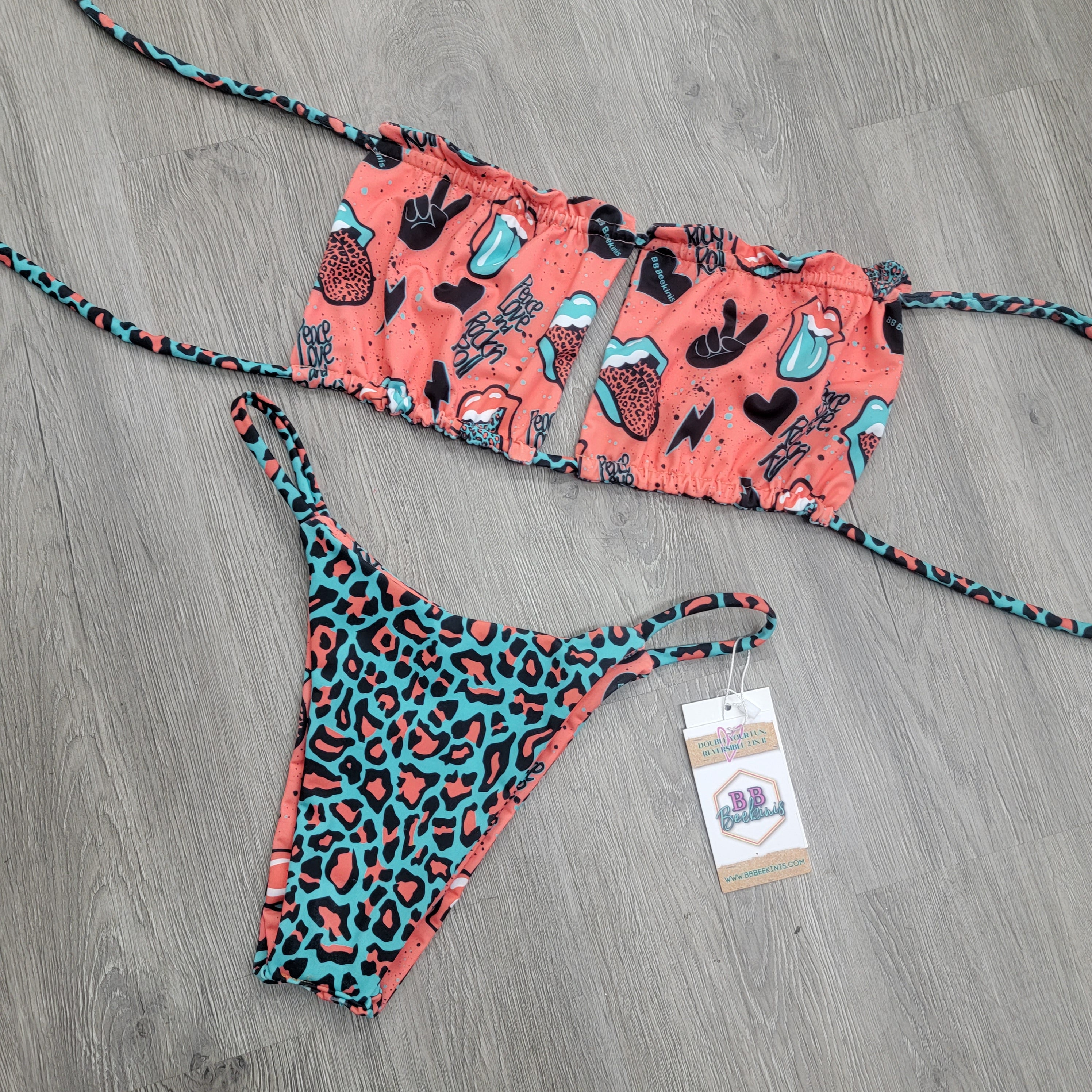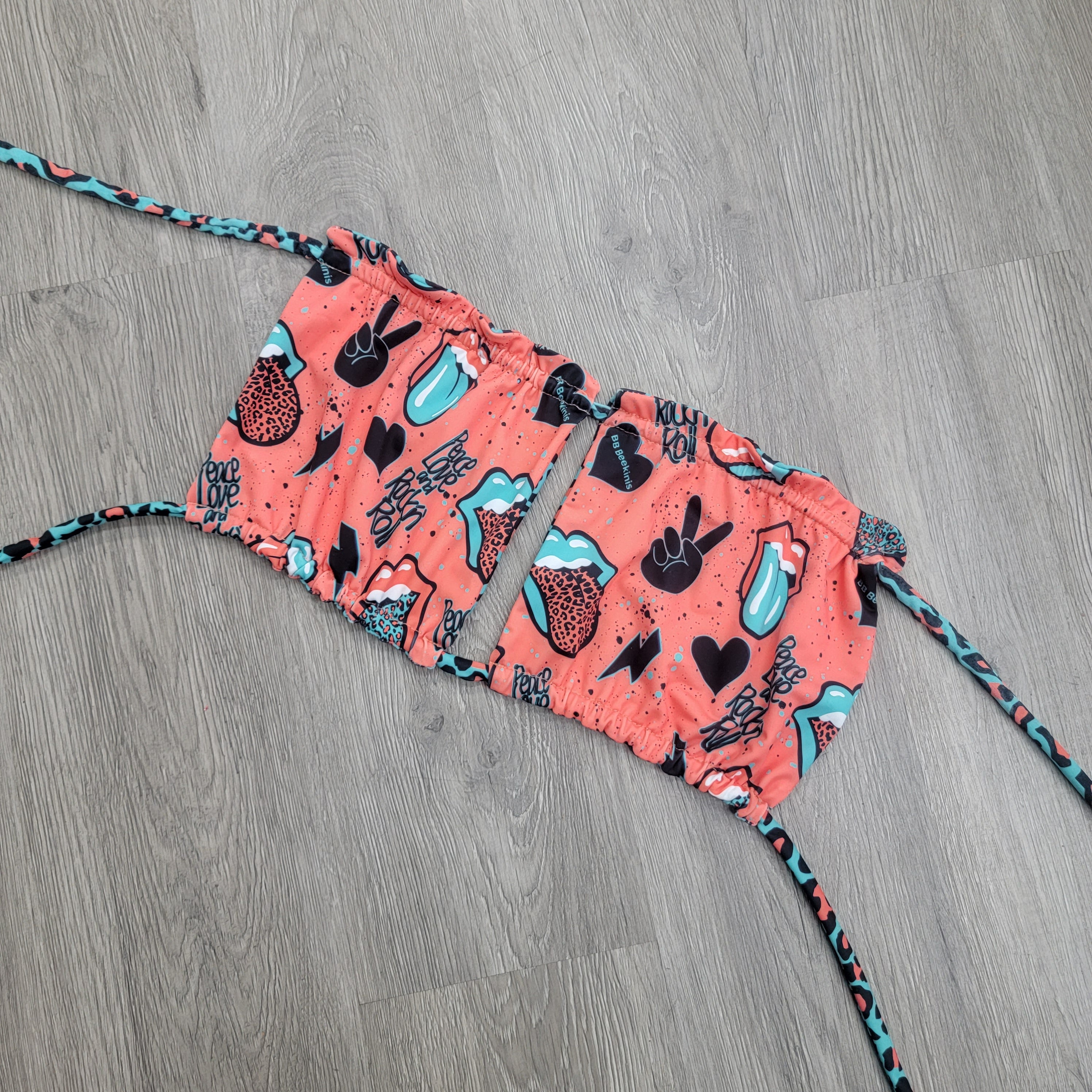 For those who embrace their inner Rock n' Roll Cutie, our Ditzy Top is a must-have. Featuring an edgy leopard print in vibrant shades of coral and teal, this top is perfect for those who like to mix it up. Plus, it's reversible - perfect for when you can't decide which side to rock!