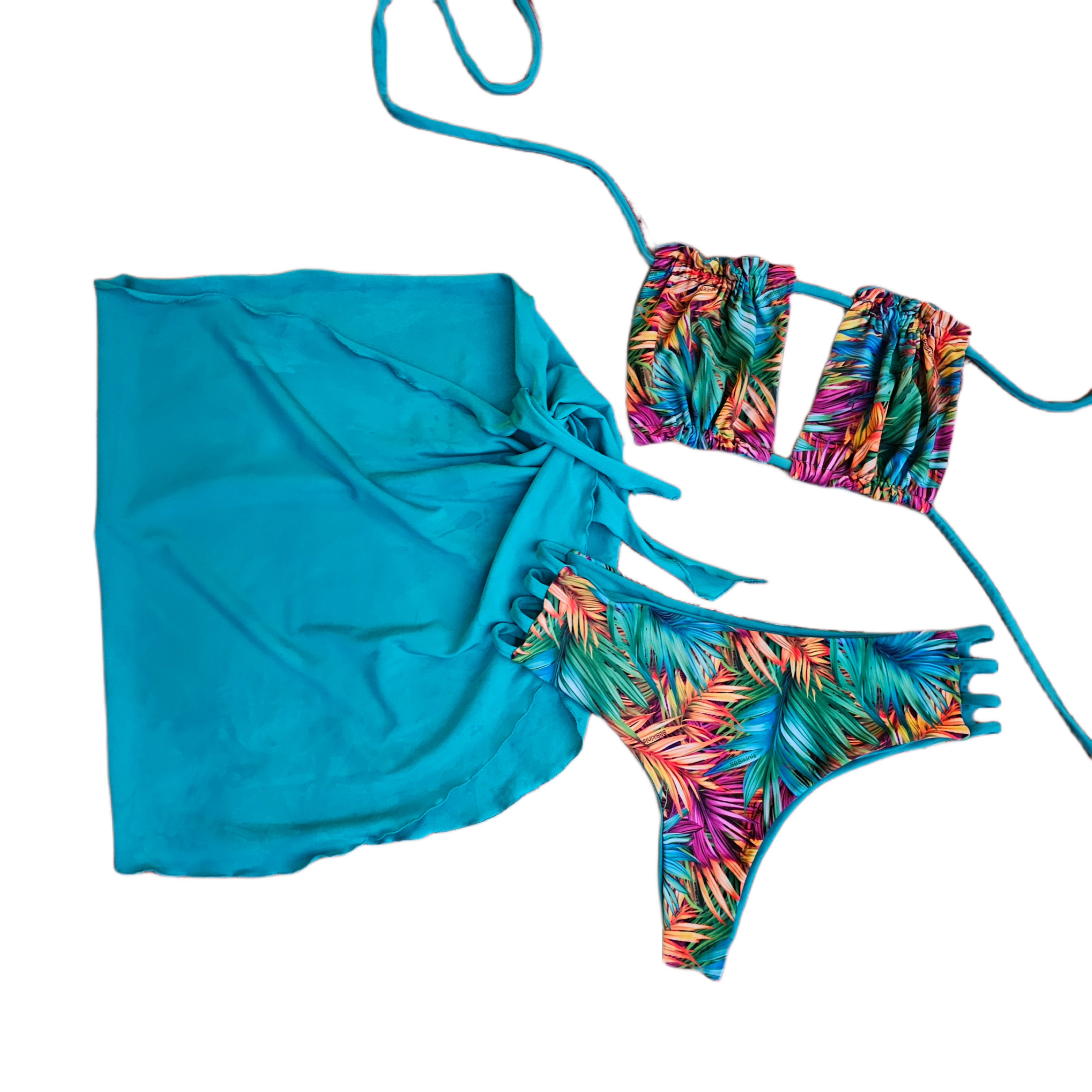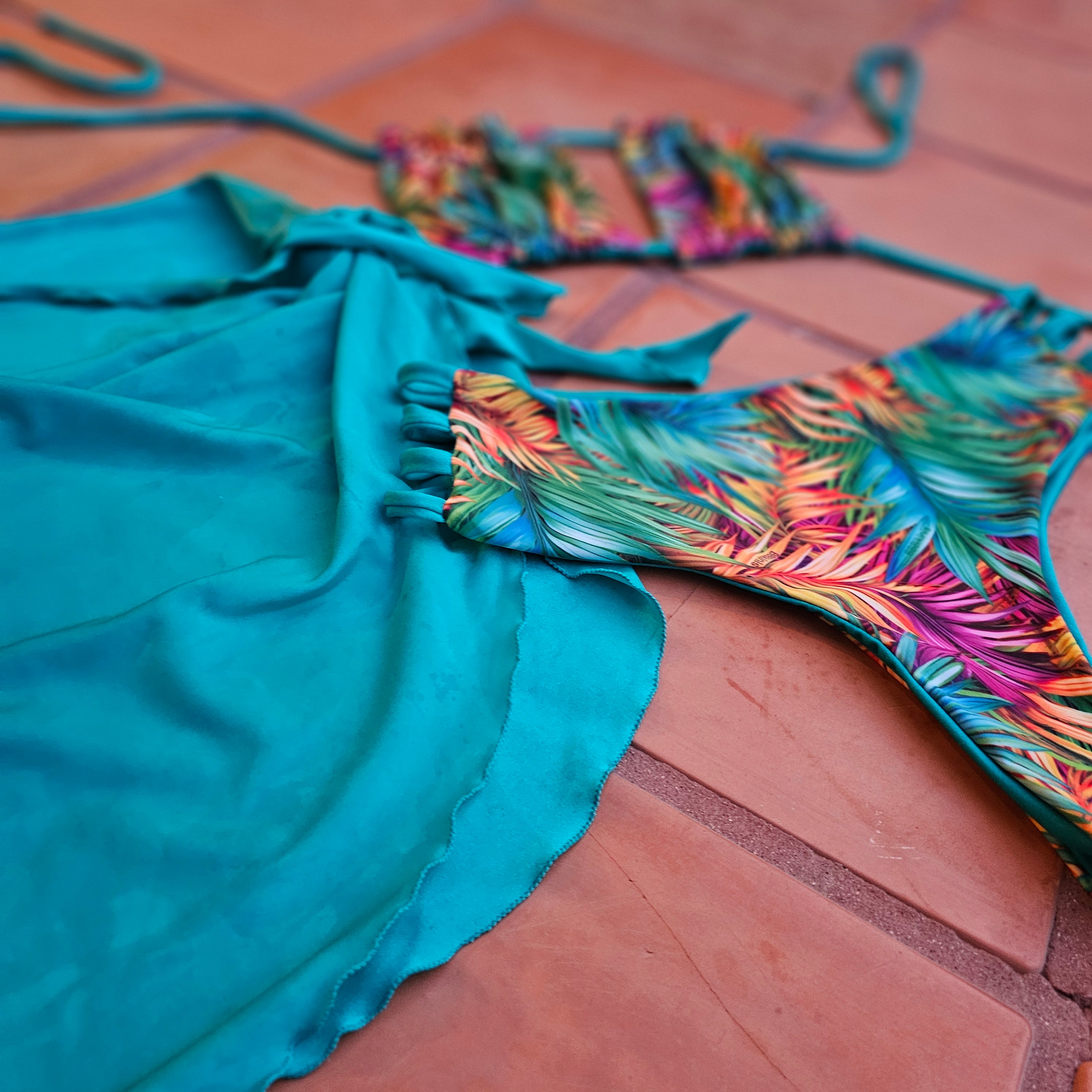 Cover up in style with the Waboijto sarong cover up! Made from teal spandex, it features a playful lettuce ruffle hem and a tie skirt for a flattering fit. Perfectly pairs with the Wabojito bikini set.
