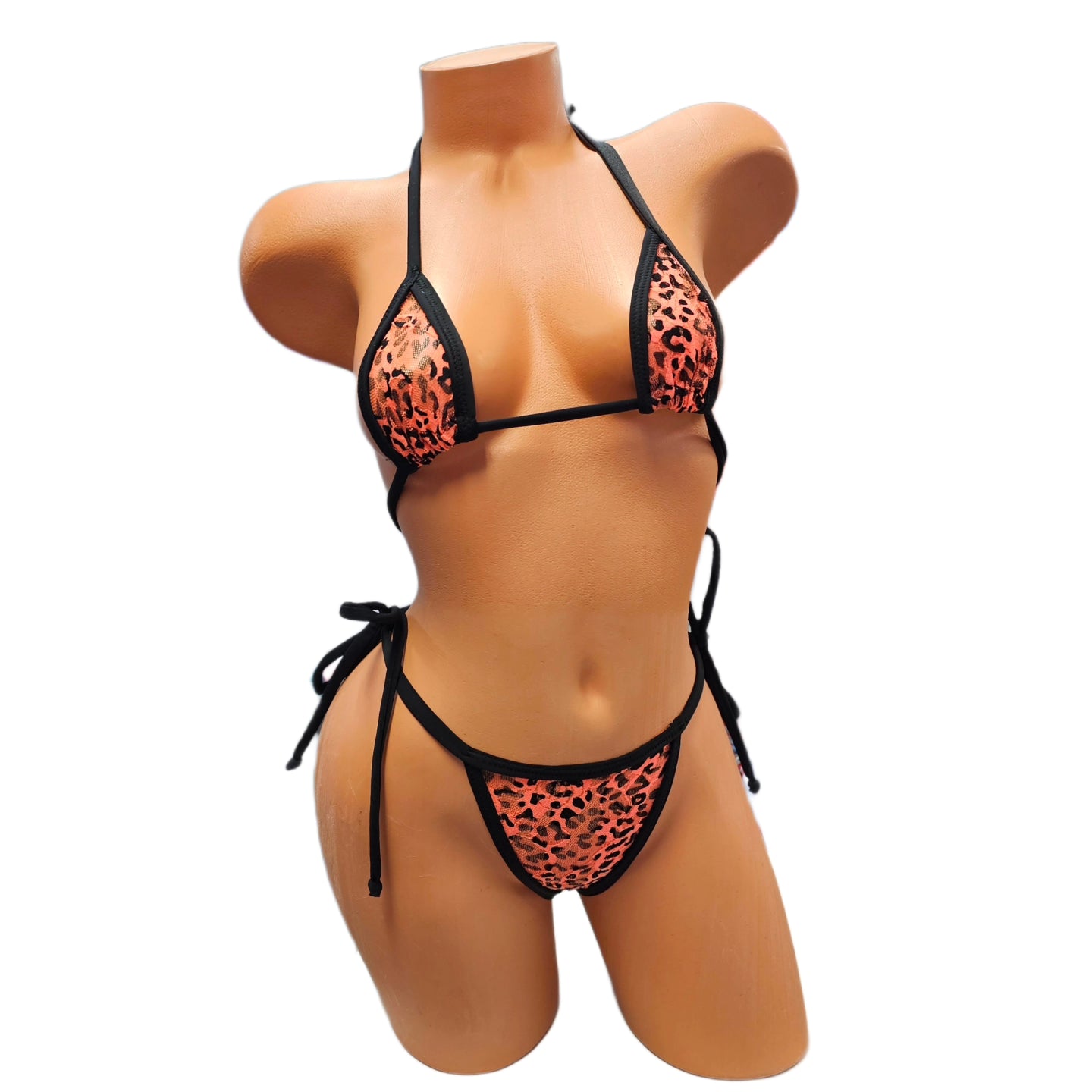 Unleash your bold side with the seductive Cheetah Tini Kini! The mesmerizing Orange lace mesh is highlighted by striking Black piping, while the adjustable straps and string back exude confidence and sexiness. This set features adjustable tie hips - select your sizes and prepare to conquer the world!